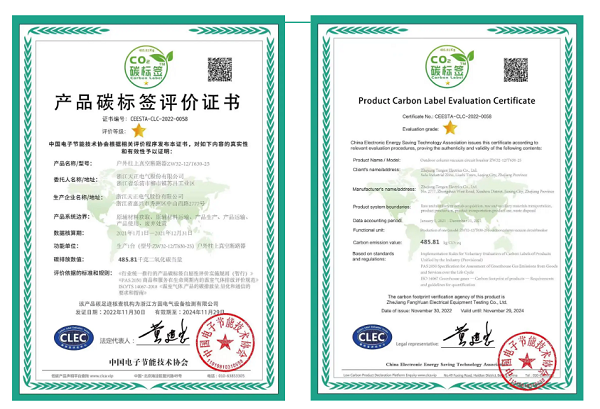 此次碳标签评价表明,17c官网点击进入电气生产的户外柱上真空断路产品,在碳排放大数据方面按国际通行惯例推进,并具备一定的优势,对促进产品全供应链的温室气体减排,达成“双碳”目标具有积极作用。此外,17c官网点击进入还获中国电子节能技术协会颁发的低碳产品供应商证书。